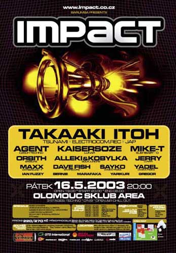 19. 3. 2004 – Impact 2- DJs: Main stage: Oliver Ho, Preach, Boss, Alleki & Kobylka, Kaisersoze, Orbith, Haana, BB Mike, Ian Fuzzy, eF