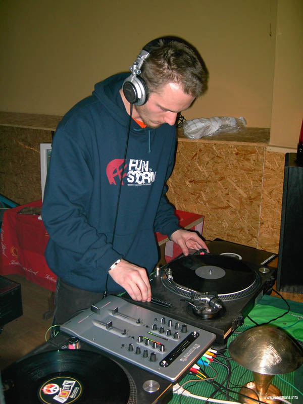 Večer pro nás začal už v 18h hned jak jsme rozjeli přípravy, které trvaly až do 20h. Zhruba v tuto dobu projel svou zásobu mp3 na PC DJ Czenda. Po dvou veselých úvodech zabrousil do zčeřených vod breakbeatu, aby ve druhé půlce setu proplul až k průplavu zvanému drum and bass.
